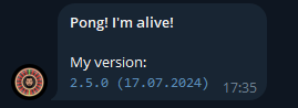 * **`/ping`** A simple but fun command on our Telegram bot. When users type /ping, the bot responds with "Pong," and it also displays the current version of the bot. It can be used as a kind of game or to check the connection and bot version.