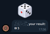 * **`/dice`** The /dice command allows users to roll a virtual die on our Telegram bot. It's ideal for gambling games or random decisions where a random outcome is needed.